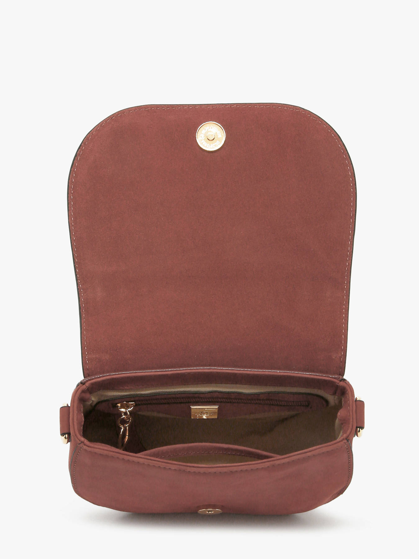 The ETRIER crossbody bag from the LASSO line, in a small S size, closes with a magnetic flap combined with a zipper. The LASSO line stands out with its two-tone design featuring rounded details, offering a beautiful contrast of textures in a more compact volume. The back of the bag is made of grained leather, ensuring durability and structure. Its sporty-chic shoulder strap, enhanced with the ETRIER hardware, gives a modern and refined look. This structured and elegant bag is perfect for adding character to more understated winter outfits.